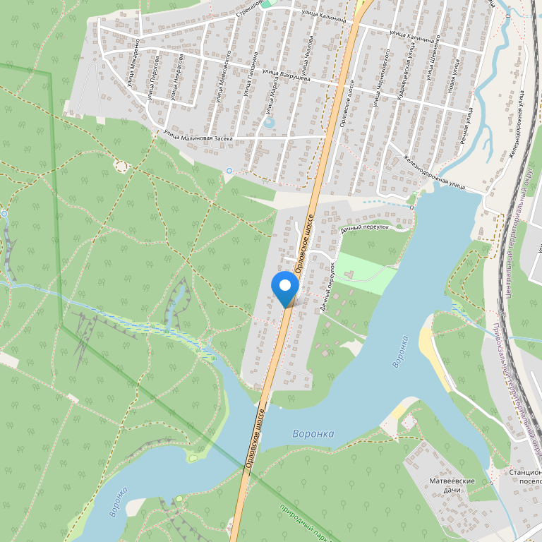 Отель расположен на юге Тулы в лесопарке на границе с заповедником Л.Н. Толстого «Ясная поляна», около 20 минут езды от центра города.