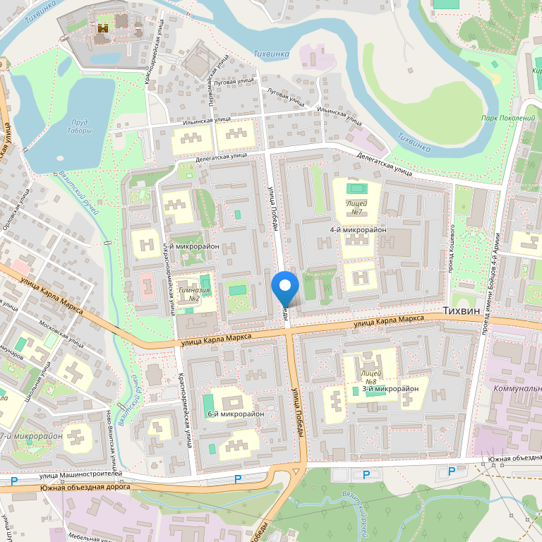 Гостиница СВИРЬ расположена в центре Тихвина на пересечении улиц Карла-Маркса и Победы, где находятся магазины и рестораны.