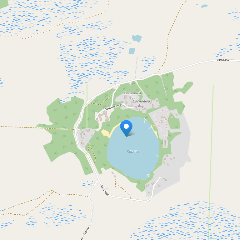 Санаторий Сосновый бор расположен в живописном сосновом бору на берегу озера Карась. Благоприятные природно-климатические условия и ландшафтные характеристики делают месторасположение санатория уникальным. Основной медицинский профиль санатория – лечение заболеваний органов дыхания, костно-мышечной системы, нервной системы и органов пищеварения.