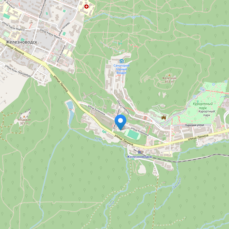 Санаторий расположен в самом центре Курортной зоны, в двух шагах от тропы терренкура и целебного Лермонтовского источника. До аэропорта "Минеральные Воды". От Минеральных Вод автобусом 107 до Железноводска. Поездом до ж/д вокзала "Железноводск". Далее - на маршрутном такси до улицы Лермонтова, 12.