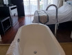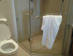 Очень удивило отсутствие в ванной комнате 1 стены - вместо неё шторка жалюзи, прикрывающая открытый проём в стене. Там нет...