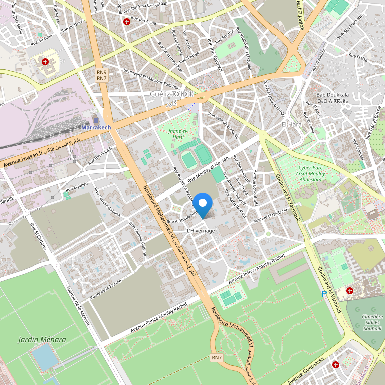 Отель расположен недалеко от центра Марракеша, в сердце исторического квартала Ивернаж, напротив марокканского дворца съездов.