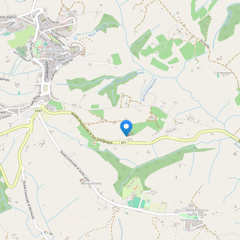 Отель, окруженный оливковыми деревьями и восхитительным садом в итальянском стиле, расположен в 5 км к северу от Сан-Джиминьяно, на холме с видом на долины. Состоит из двух частей – виллы, построенной в девятнадцатом веке и здания, современной постройки.
