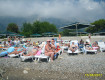До пляжа далеко. Идти минут 7-10. Крупная галька, вход в море-...