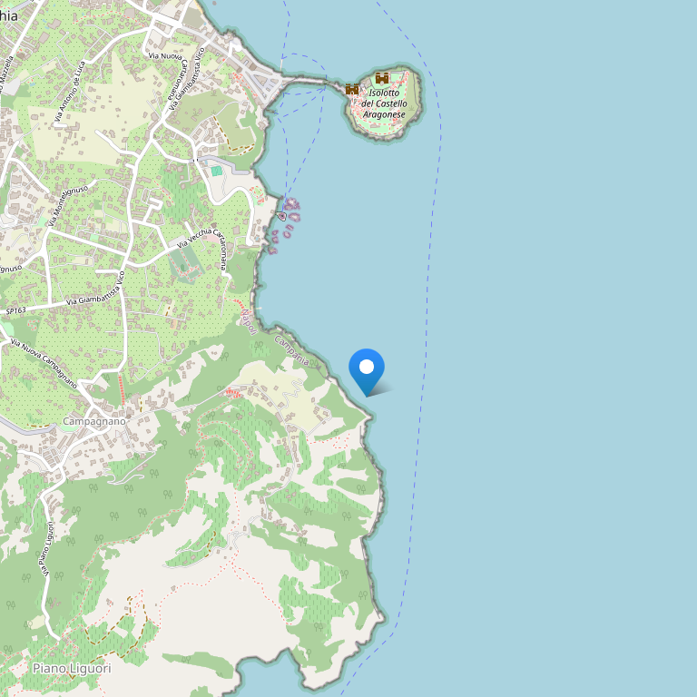 Расположен в бухте Картаромана с видом на море и Арагонский замок, в 1,5 км от Искья-Понте. Автобусная остановка находится прямо перед отелем.