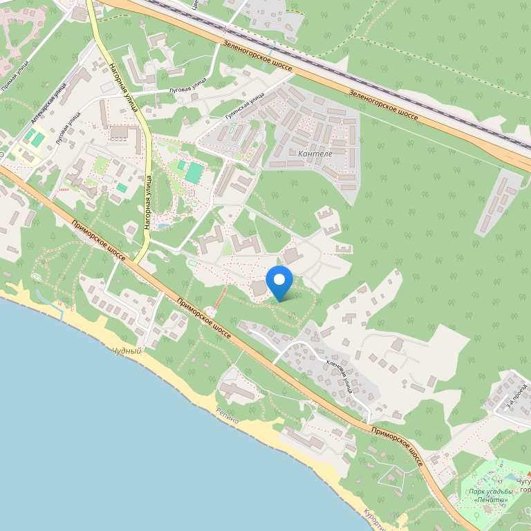 Пансионат расположен в вдоль побережья Финского залива, в 40 км от Санкт-Петербурга