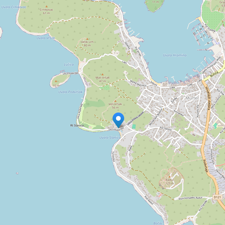 Главный пляж остров Муртер – Сланика – расположен совсем недалеко от отеля.
