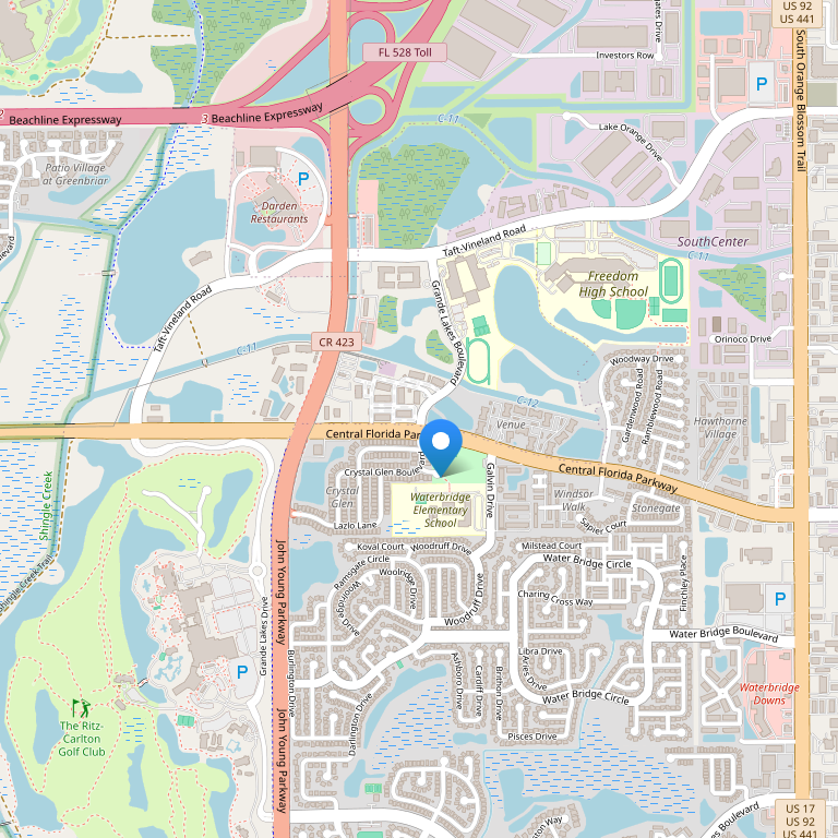 Отель располагается в 16 км от международного аэропорта Орландо и тематического парка "Мир Уолта Диснея", и в нескольких минутах езды от парка "Си Уорлд" и Юниверсал Студиоз. Отель
