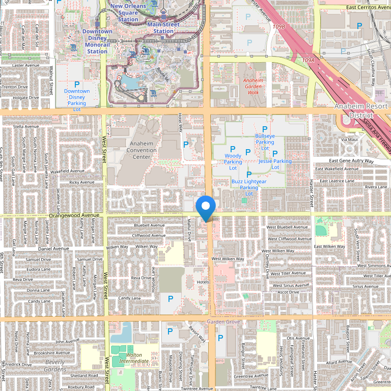 Отель расположен рядом со знаменитым Orange County и прилегает к Anaheim Convention Center, всего в нескольких минутах ходьбы от Disneyland Resort. Международный аэропорт Los Angeles находится в получасе езды от отеля.