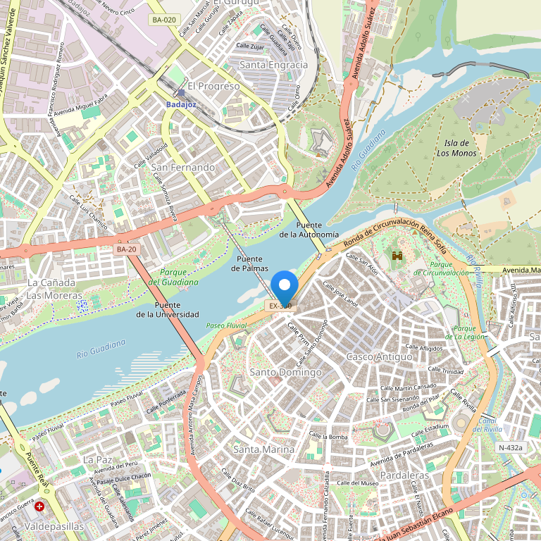 Отель расположен на правом берегу реки Гуадиана, в городском жилом и деловом районе, всего в 10 минутах езды от исторического центра города. От отеля имеется прямой доступ к двухполосной магистрали Мадрид-Лиссабон. Недавно построенный отель расположен в комплексе отдыха, где имеется зал для игры в бинго и казино. Он идеально подходит как для деловых поездок, так и для отдыха.
