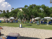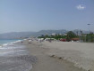 Большая зеленая территория, большой пляж (галька), на пляже зонтики и линии под тентами, размещение на зеленой лужайке под деревьями. Лежаков...