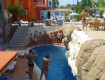 Отель расположен в 7 минутах ходьбы от моря. Своего пляжа у них нет, поэтому за место под солнцем мы платили по 2$, почти на таком же расстоянии (7-10 мин.) 4 ночных клуба, красивейший парк Йорюк, и до центра Кемера...
