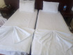 Номер - маленький, скромный. Поставили ещё одну кровать наперекосяк, хотя она там по факту не предусмотрена.