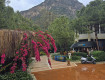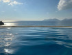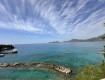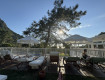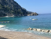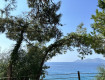 1. красивая живописная территория , окруженная горами с хвойными деревьями и красивым бирюзовым морем;