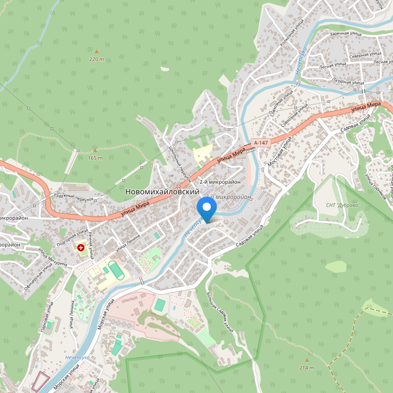 Отель расположен в Туапсинском районе, на берегу горной реки Нечепсухо, в экологически чистом районе поселка Новомихайловский (в 35 км. от г.Туапсе).