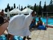 Мы отдыхали втроем: мама, папа и ребенок 7 лет. Прилетели в 12 по турецкому времени, сразу пошли на завтрак, после этого ребенок уже радостно плескался в одном из бассенов, в то время как родители в кроссовках и спортивной одежде стояли рядом (в Москве на время вылета было достаточно...