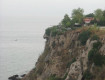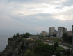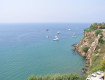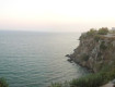Море у скалы, 5 лежаков около моря и очень грязно