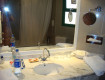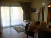 Разместили нас спустя 5 часов(насмотря на то, что номера на 1/3 были пустые)... Мебель древняя, в номере(жили напротив Аквапарка) спинка кровати отдельно от спального места, крышка от стола, шкаф закрывается только при большом усилии рук и НОГ! Кошмар!