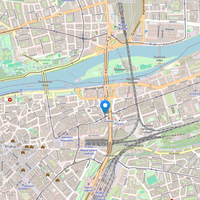 Стильный бутик-отель MOODs расположен в маленькой и тихой улице, всего в 200 метрах от берега реки Влтавы. Станция метро Náměstí Republiky находится в 400 метрах, а трамвайная остановка Dlouhá třída - в 300 метрах.