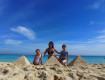 Песчаный пляж, лагуна, есть кораллы. Море великолепное.