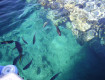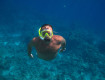 Пляж песчаный, но купаться с 2-ух понтонов. Глубина около 10 метров, берите маску, есть на что посмотреть.