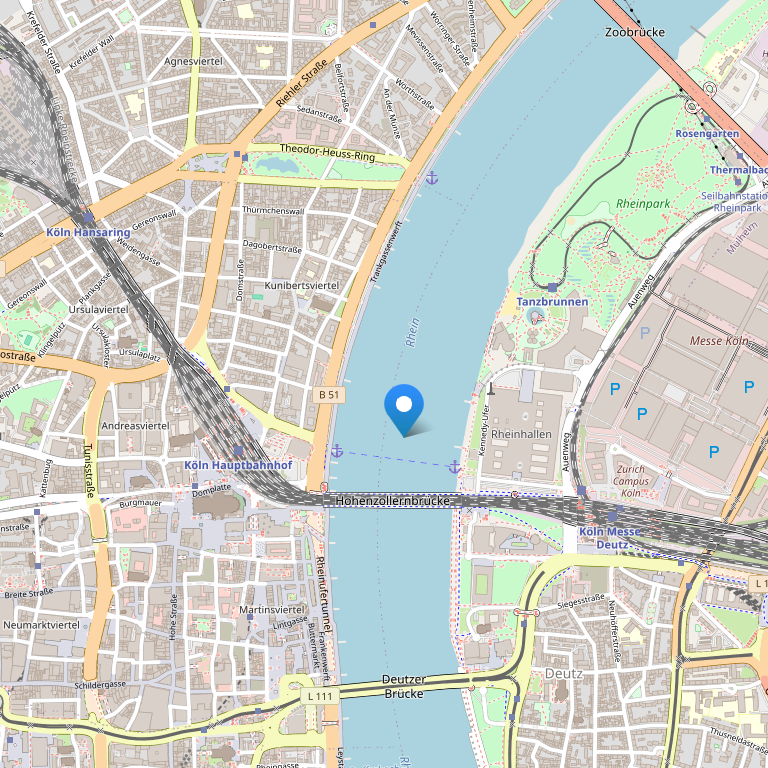 Отель расположен в центре Кельна, недалеко от всемирно известного Кельнского собора непосредственно рядом с Центральным железнодорожным вокзалом Кельна.
