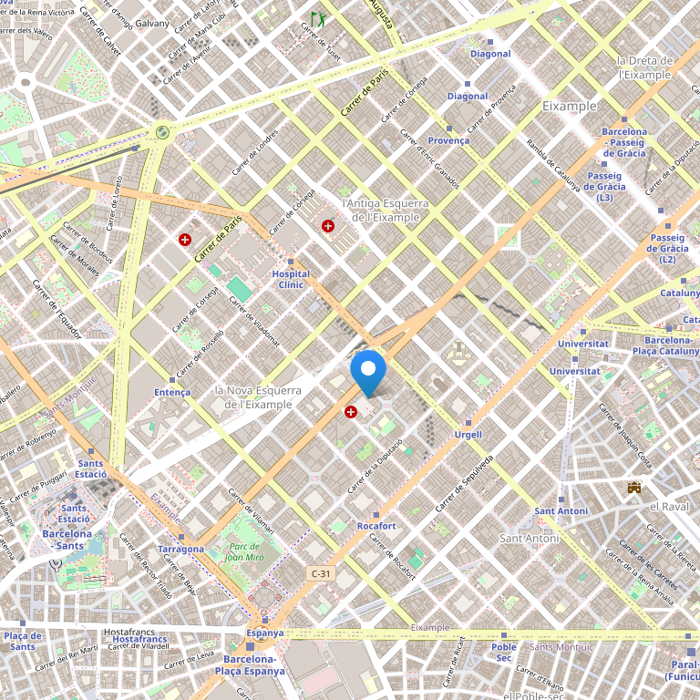 Отель Atenea Calabria расположен в барселонском районе Эйшампле, вблизи остановок общественного транспорта, главных магистралей и таких барселонских достопримечательностей, как: площадь Каталонии и Выставочный комплекс "Фира Барселона".