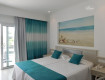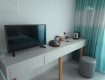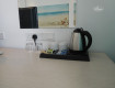 Номер красивый в бежево-голубых тонах,просторный,над кроватью красивые подсвечивающиеся фотообои,номер уютный.Есть чайник,чашки,стаканы,когда приехали был кофе и чай в пакетиках,сахар,и даже по-моему джем в маленьких упаковочках.