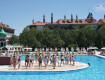 Начнем с территории.Зеленая и ухоженная,не большая и не маленькая.Вся инфраструктура отеля рационально расположена,все бассейны ,бары,палатка гезлеме,аквапарк и т.д. находятся в не утомительной пешей доступности.На пляже и у бассейнов достаточное...