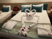 Мы как и многие перед вылетом через топ хотелс написали обращение в отель с просьбой в качестве комплимента по возможности предоставить хороший номер, честно ни на что не рассчитывали. Каково же было наше удивление, когда нас заселили в главный корпус с видом на море. Еще номер был украшен к нашему приезду. Огромное спасибо!!!