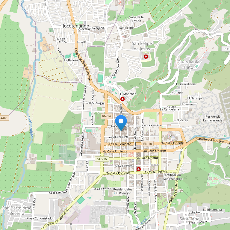 Отель расположен в 4 кварталах от центральной площади Антигуа EL PARQUE, в 1 квартале от арки Santa Catarina, в полуквартале от цервки LA MERCED, в пределах пешей досягаемости от основных достопримечательностей, баров и ресторанов.