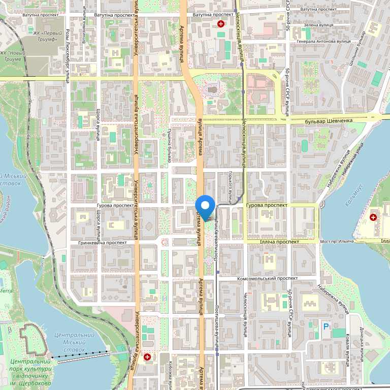 Отель удачно расположен в тихой части Делового и Культурного центра Донецка, вблизи парковой зоны отдыха и главной площади города, недалеко от набережной реки Кальмиус, в 3-х минутах езды от стадиона Донбасс-Арена - бриллианта столицы Донбасского края.