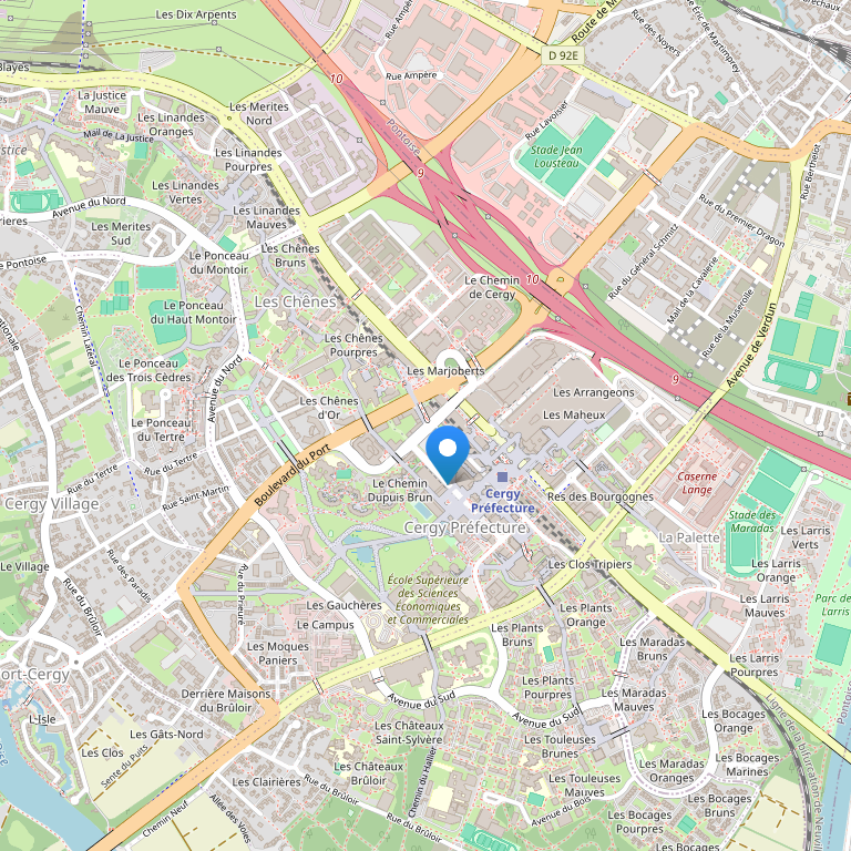 Отель расположен в центре города Сержи, в районе Chenes, в 10 минутах ходьбы от железнодорожного вокзала Cergy Prefecture, в 40 км от аэропорта PARIS ROISSY CDG, в 70 км от аэропорта ORLY.