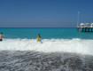 Пляж крупная галька, но когда сильные волны, появляется песок и в море легче заходить. А так купались с пирса.