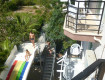 Нам достался чистый, скромный трехместный номер с видом на бассейн, горку и горы. Большой плюс, что нас не изнуряло...