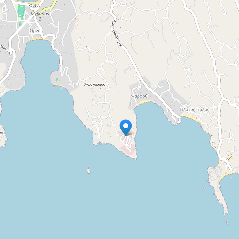 Отель расположен в пляжной зоне Platis Gialos и Psarou, в 3,5 км от центре города Kyklades и 4 км от аэропорта.