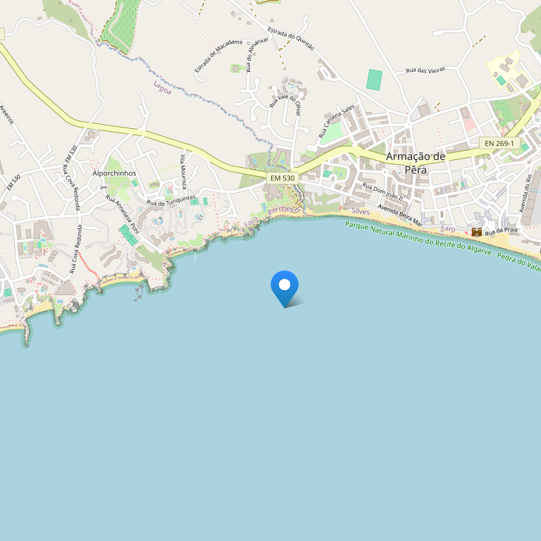 Расположен в 5 мин. езды от Армасао де Пера, 48 км от а/п Фаро, в тихом месте на высоком берегу океана с прямым спуском к пляжу.