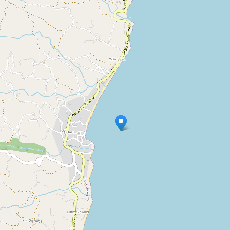 Chrani beach в 100 метрах от отеля. Лежаки и зонтики платно.