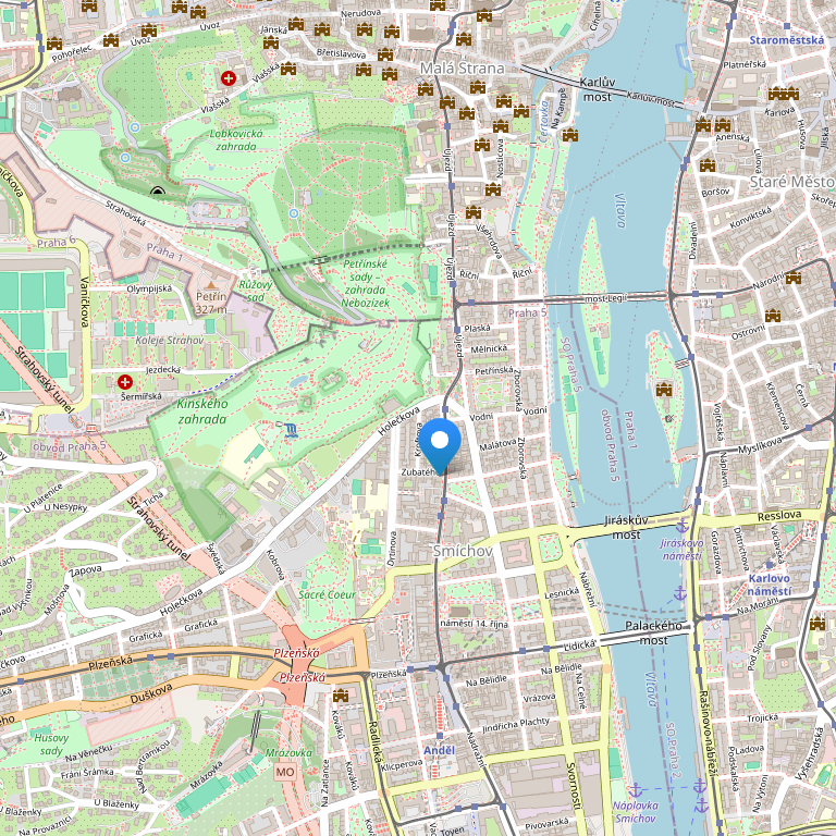 Отель находится в тихом месте рядом с садами Кински, на расстоянии пешей прогулки от Старого города. С близлежащих трамвайных остановок и станции метро можно легко добраться до центра города. Здесь, на левом берегу Влтавы, Вы окажетесь одновременно в сердце Праги и вдали от толп туристов. Проехав всего 2 трамвайные остановки, Вы окажетесь рядом с Национальным театром, а проехав ещё несколько остановок, Вы очутитесь на Вацлавской площади, у знаменитого Карлова моста или любого другого пункта в центре Праги.