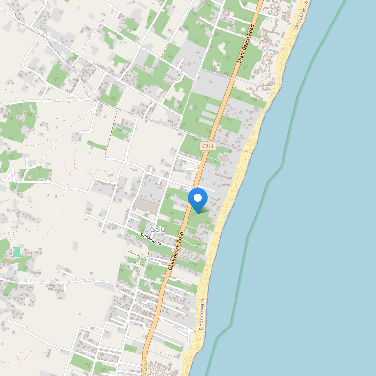отель расположен к югу от Момбасы, на восточном побережье Африки, между кристально чистыми водами Индийского океана и открытыми равнинами Национального парка Shimba Хиллз.