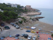 Возвышается прямо над пляжем. Пляж песчаный, небольшой, находится в небольшой бухте, заход в воду плавный,по обе стороны бухты небольшие скалы-