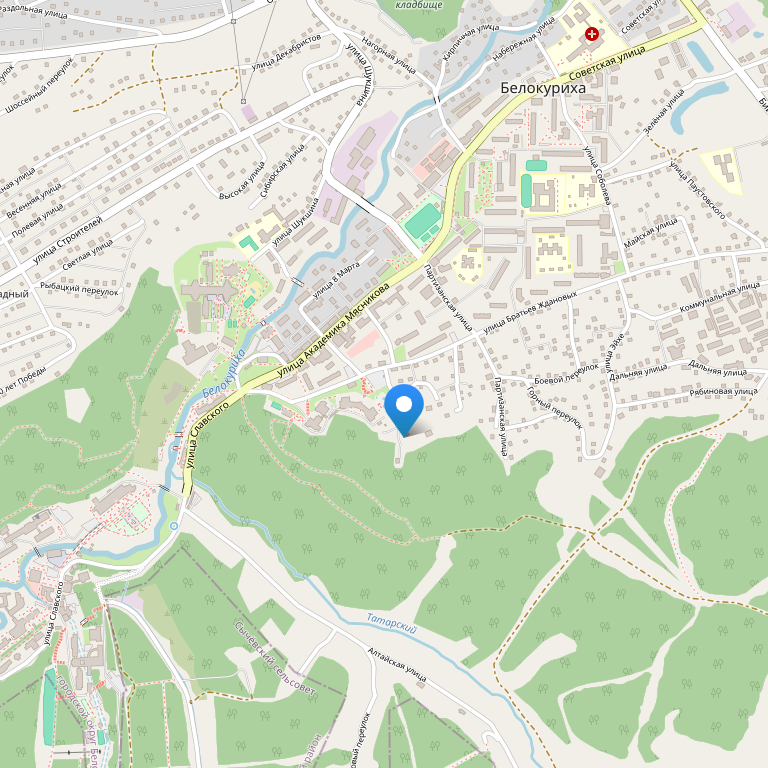Отель расположен в центральной части города Белокуриха, при въезде в курортную зону, примерно в 1,5 км от горнолыжных трасс.