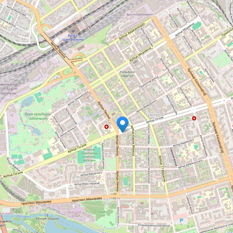 Отель расположен в городе Бресте на юго-западе Беларуси, в непосредственной близости от музеев, театров, мест отдыха и спорта, а из его окон открывается прекрасный вид на великолепный городской парк и сквер с вековыми деревьями.