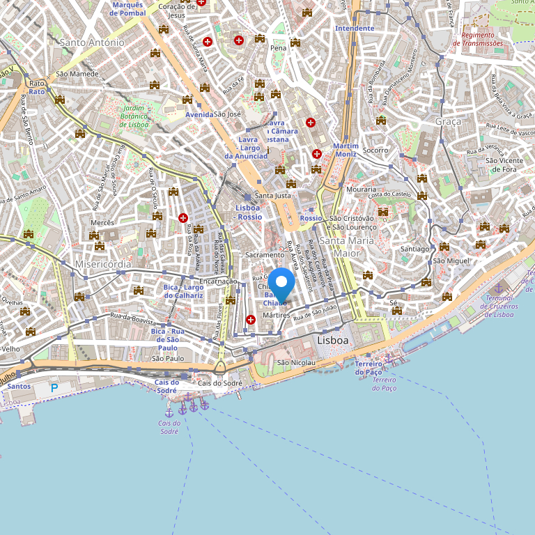 Отель Gat Rossio находится в центре города, на тихой улице позади площади Рештаурадореш и станции метро. Замок канонического Святого Георгия находится в 10-ти минутах ходьбы, а вокзал Россио - в 50 м от отеля Gat Rossio. Остановка автобуса до аэропорта расположена всего в нескольких метрах от входа в отель.