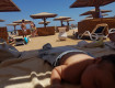 1/Море: его «увидеть» сложно: единственный заход с очень длинного понтона - метров 300. Есть всего три! спуска. Всегда битком людей. Везде при заходе - сразу глубина; дно ногами не достаёшь. Плавать особо негде - буйки очень близко и спасатели не разрешают за них заплывать. С берега заход затруднён-очень далеко - мелко...