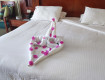 Начну с номера. Он был достаточно большим, с наличием всего необходимого(фен, сейф, рыльно-мыльные принадлежности, большие кровати с удобными матрасами, общий кондиционер). Халаты и тапочки нам не дали. Номер убирали...