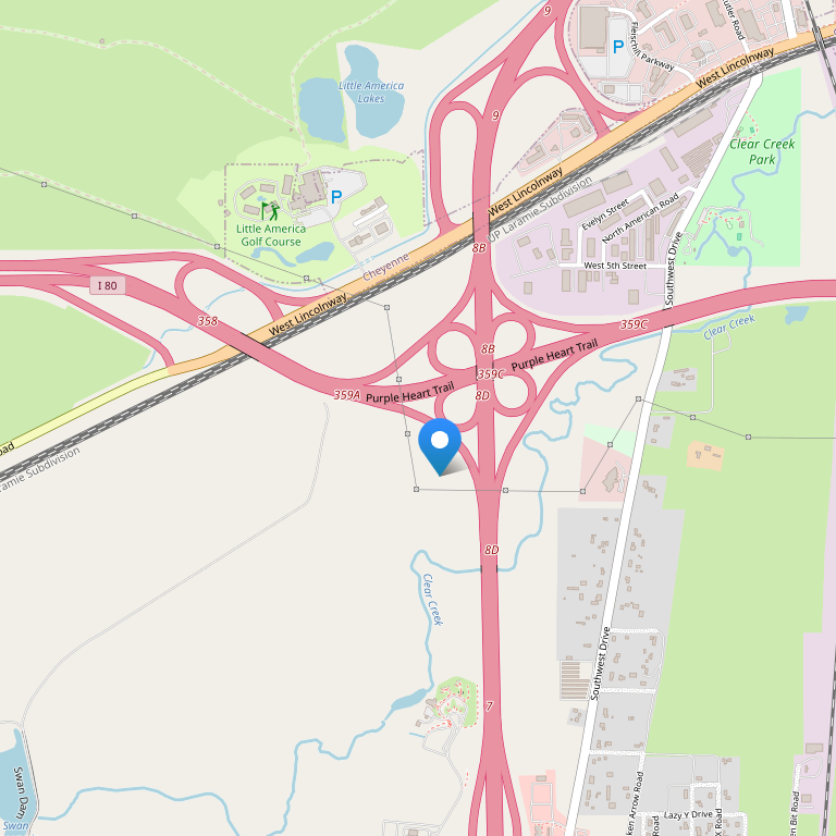 Отель Little America расположен на пересечении шоссе 80 и 25, всего в нескольких минутах езды от центра Шайенна, Капитолия, базы F.E. Warren Air Force Base и Cheyenne Frontier Days Park, а также недалеко от Национального парка Rocky Mountain National Park.
