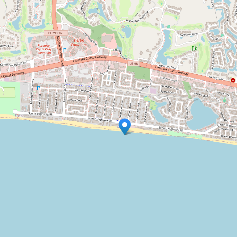 Отель расположен прямо на пляже в самом центре города Дестин.