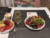 Заселялись поздно вечером. Нас сразу отправили в ресторан ужинать и после сразу разместили в номер с видом на море как и заказывали. Номера стандартные, так что вчетвером было тесновато. Номер простенький, но все необходимое было.