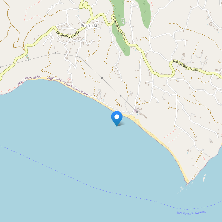 Отель расположен на юго-восточном побережье Кефалонии, в 3 км от курортного городка Скала. Отель находится в заповедной зоне, на берегу пляжа Мунда, где откладывают яйца морские черепахи Карета-Карета.